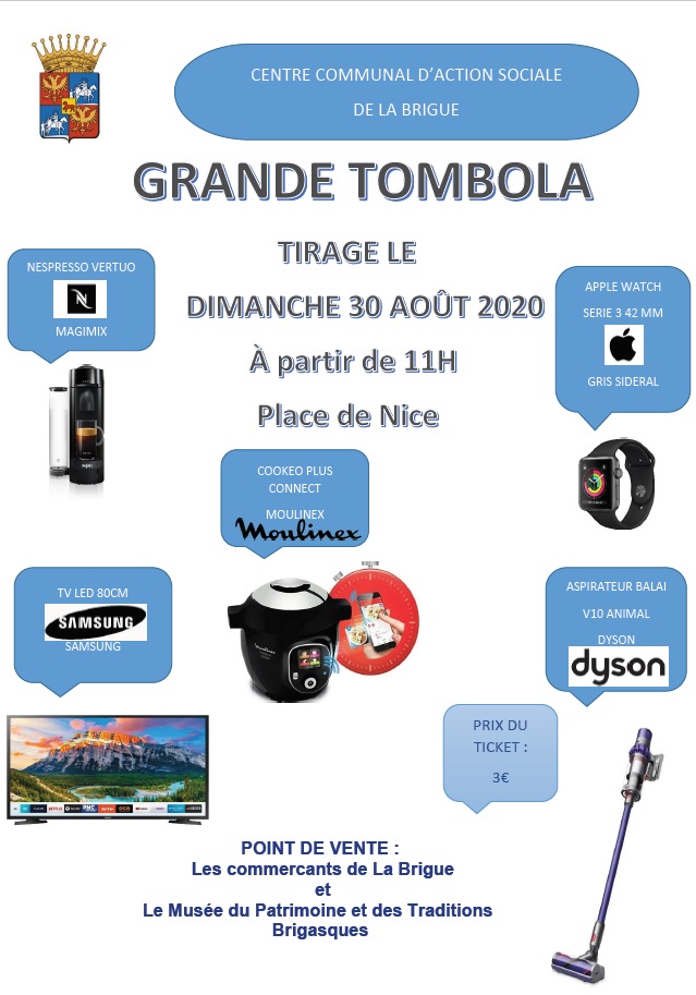 30 août 2020 à 11 h 00 min - 12 h 30 min GRANDE TOMBOLA Place de Nice Place de Nice, La Brigue, France